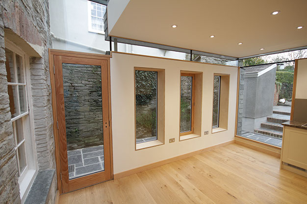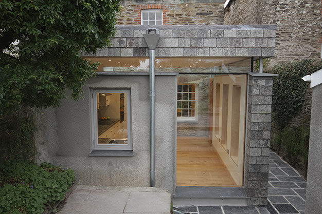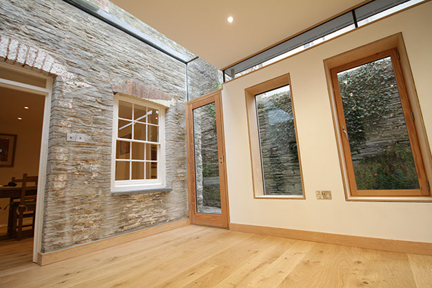 The project began when our clients purchased this grade two listed building in Wadebridge. We were commissioned to design an extension/garden room which would make the most of the limited space available and maximise light and views to the picturesque garden behind the house.