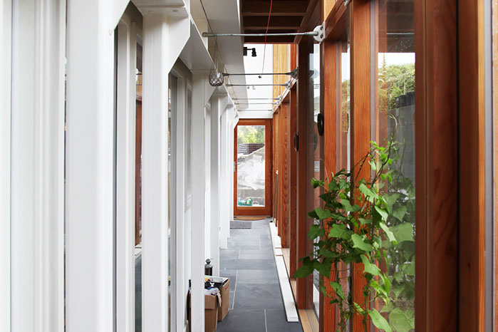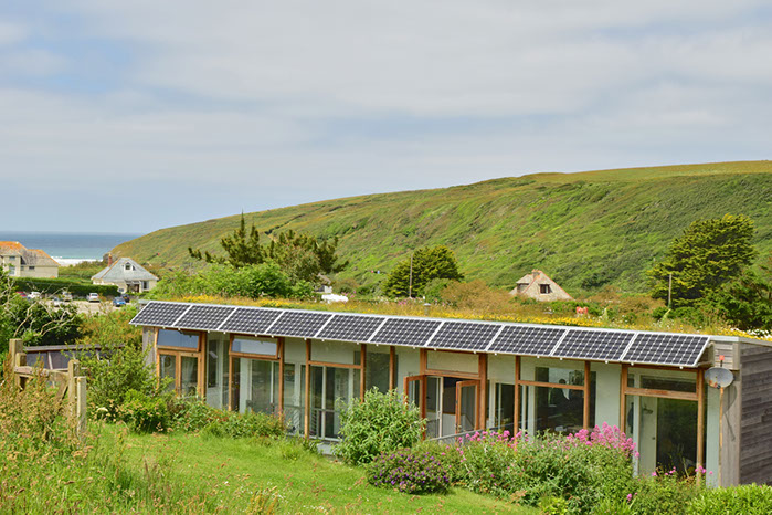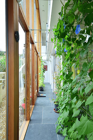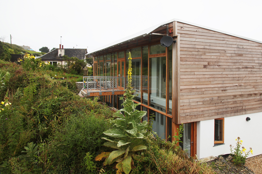 Good passive design is achieved with large areas of south-facing glazing and the use of Photovoltaic panels as solar-screening in the summer months. The house requires only a small wood burner to stay warm, thanks to the well-insulated building fabric.
