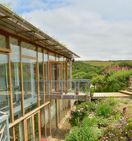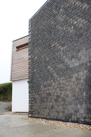 The house sits on the edge of Porthcothan Bay, on the north coast of Cornwall. Whilst the house is hidden from view from the lane, in the landscape. The first floor living space offers far-reaching views, including sunsets over the sea. The use of a wild meadow roof, slate hung walls and naturally aging timber cladding allows the house to visually sink into the valley-side.